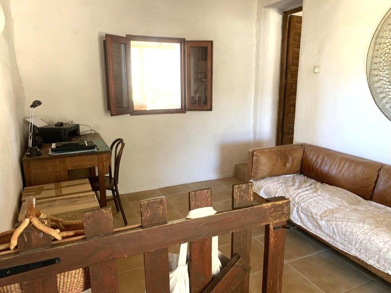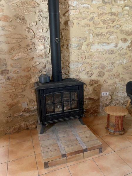 Set over two storeys, the finca features exposed stone walls, wooden beams, and double-glazed windows throughout. The bright family kitchen is flooded with natural light from three sides and includes a wood-burning range, with direct access to a covered porch—perfect for outdoor dining.