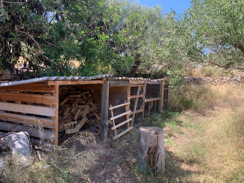 The 2.3-hectare plot comprises terraced olive groves, carob trees, and an abundance of wild herbs and flowers, all maintained chemical-free. Additional features include a wooden donkey stable, chicken coop, and raised vegetable beds—ideal for a self-sufficient lifestyle.